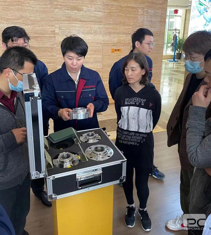 江蘇博利奧的現場,我司王總與技術趙總監講解剖分式機械密封