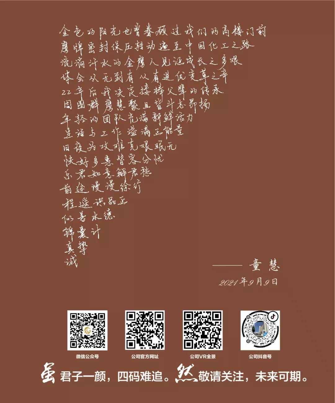 沖鋒的號角再次吹響,我們又一次出發(fā)向前。未來,我們要立足長遠(yuǎn),把握當(dāng)前,堅定信心,我們將以“有幸金鷹、無悔金鷹”的情懷,以“功成必定有我”的使命擔(dān)當(dāng),只爭朝夕,不負(fù)韶華,共同續(xù)寫金鷹下一個二十年的理想與榮光!